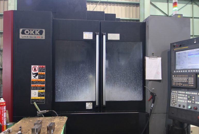OKK VM76R移動量:X軸1540mm Y軸760mm Z軸660mmテーブル:作業面積: 1550mm × 760mm耐荷重: 1500kg
